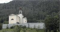 Posta su un ampio piazzale panoramico, la chiesa, dalla caratteristica forma a croce di Sant’Andrea, è documentata a partire dal 1427, e ha subito nel corso del tempo numerosi rimaneggiamenti e ampliamenti; tra gli ultimi, quello del 1922, quando venne inaugurato il complesso campanario, considerato il più armonico della valle.