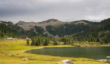 Passeggiando fra mirtilli e rododendri si arriva all’incantevole conca glaciale che ospita i laghi di S. Giuliano e Garzonè.